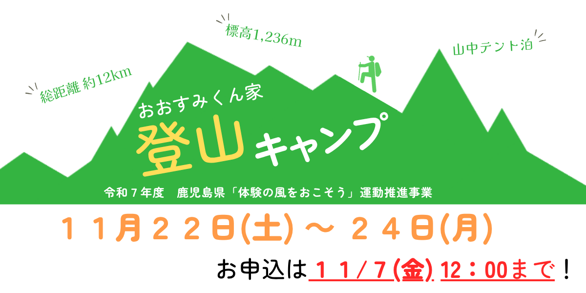 ↑画像クリックで詳細をチェック! お申し込みはこちらから→ お申込みフォーム 【申込締切11月7日(金)12:00】↑画像クリックで詳細をチェック! お申し込みはこちらから→ お申込みフォーム 大隅青少年自然の家のチラシです。ご利用の検討資料としてもご覧ください。 クリックでPDFが開きます。 おおすみくん家SDGs実践ガイドブック 実践研究事業報告書 令和7年度版「おおすみくん家通信」 所報2025