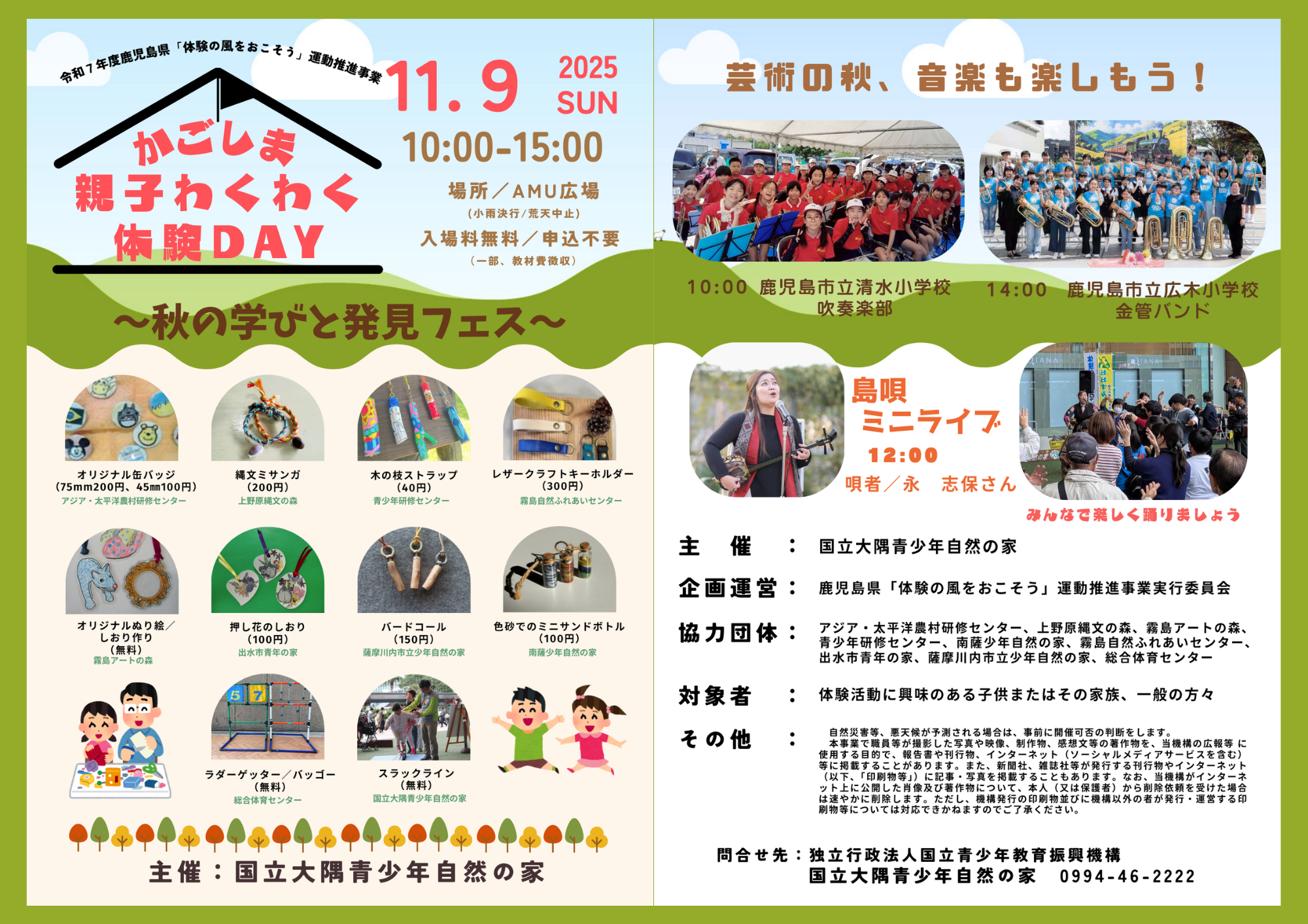 ↑画像クリックで詳細をチェック! お申し込みはこちらから→ お申込みフォーム 大隅青少年自然の家のチラシです。ご利用の検討資料としてもご覧ください。 クリックでPDFが開きます。 おおすみくん家SDGs実践ガイドブック 実践研究事業報告書 令和7年度版「おおすみくん家通信」 所報2025